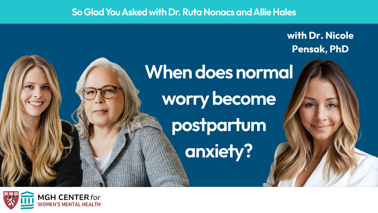 So Glad You Asked with Dr. Ruta Nonacs is our new podcast, offering expert insights on the latest research and pressing questions in reproductive mental health. Join Dr. Nonacs and co-host Allie Hales as they explore topics that matter to patients and clinicians alike, translating science into practical guidance for the most important questions in maternal mental health.